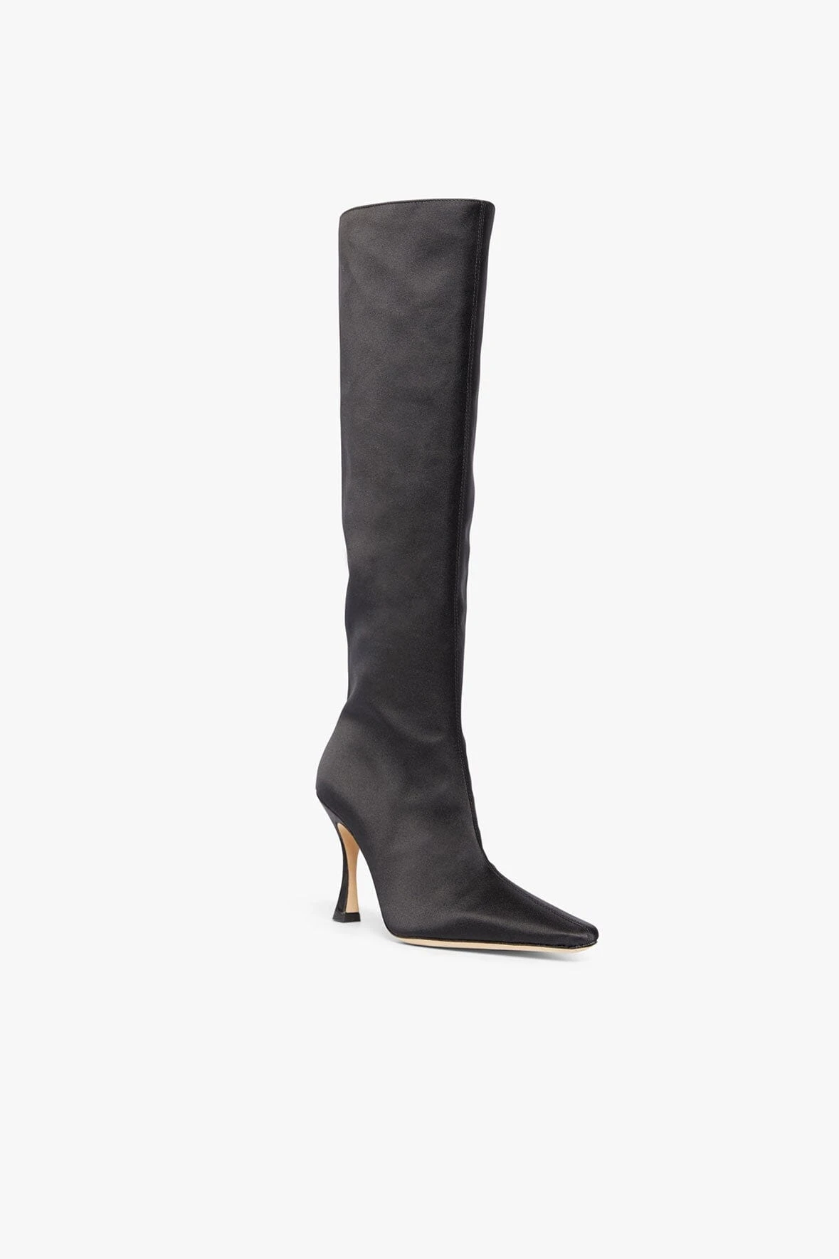 New for the season in satin, the Cami is a high heel knee-high boot. This style can be dressed up for night or worn casually during daytime.