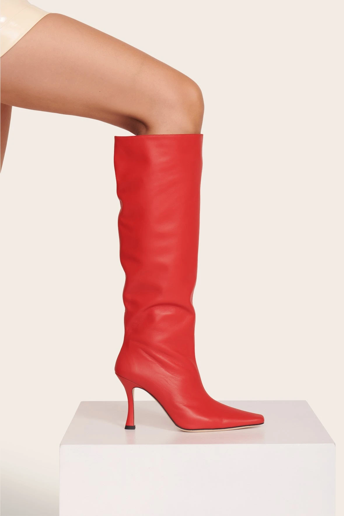 An updated high heel boot in rich bold leather. The Cami can be dressed up for night or worn casually during daytime.Â