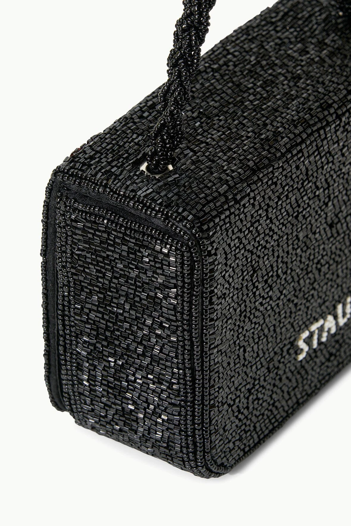 The Carmen Beaded Box Bag is our newest beaded handbag for the season, featuring a delicate beaded handle and a magnetic flap closure.