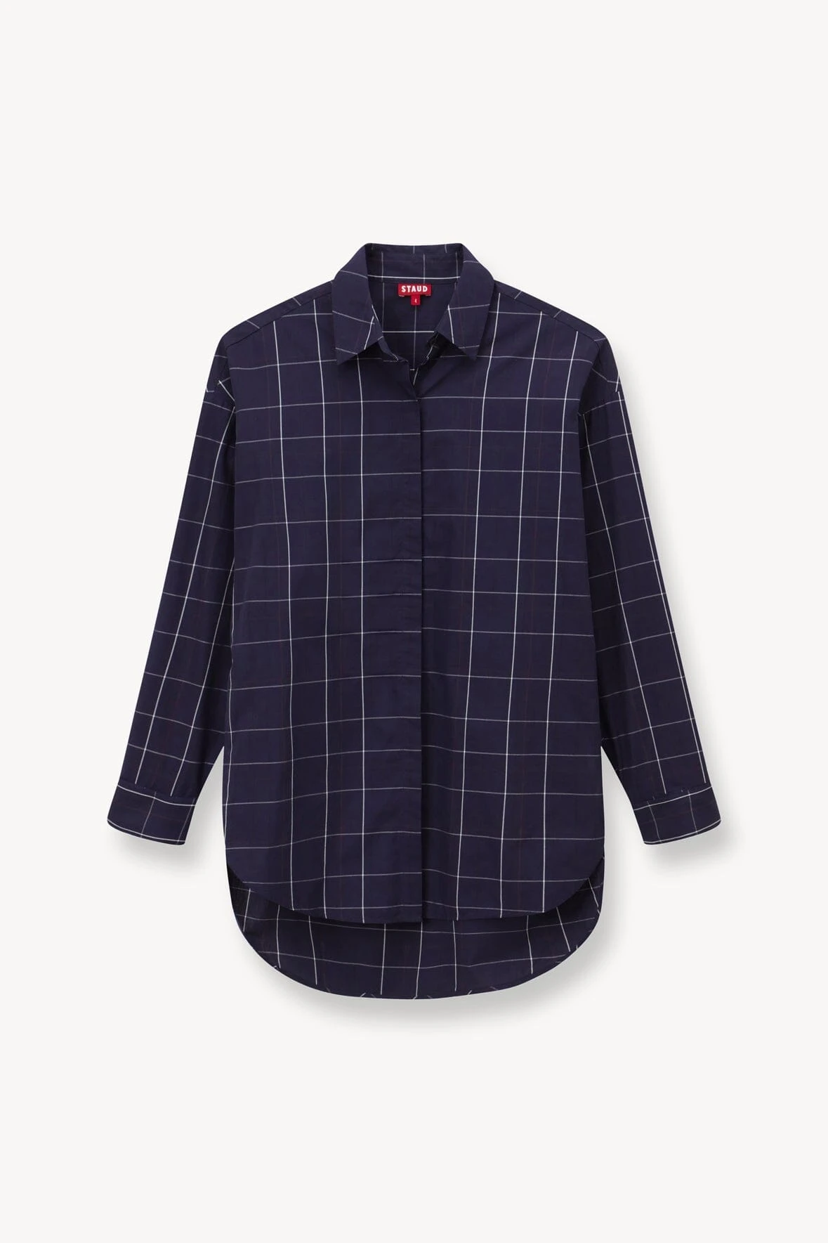 Long shirtdress constructed out of a crisp cotton poplin fabric, this style offers a relaxed silhouette and oversized fit..