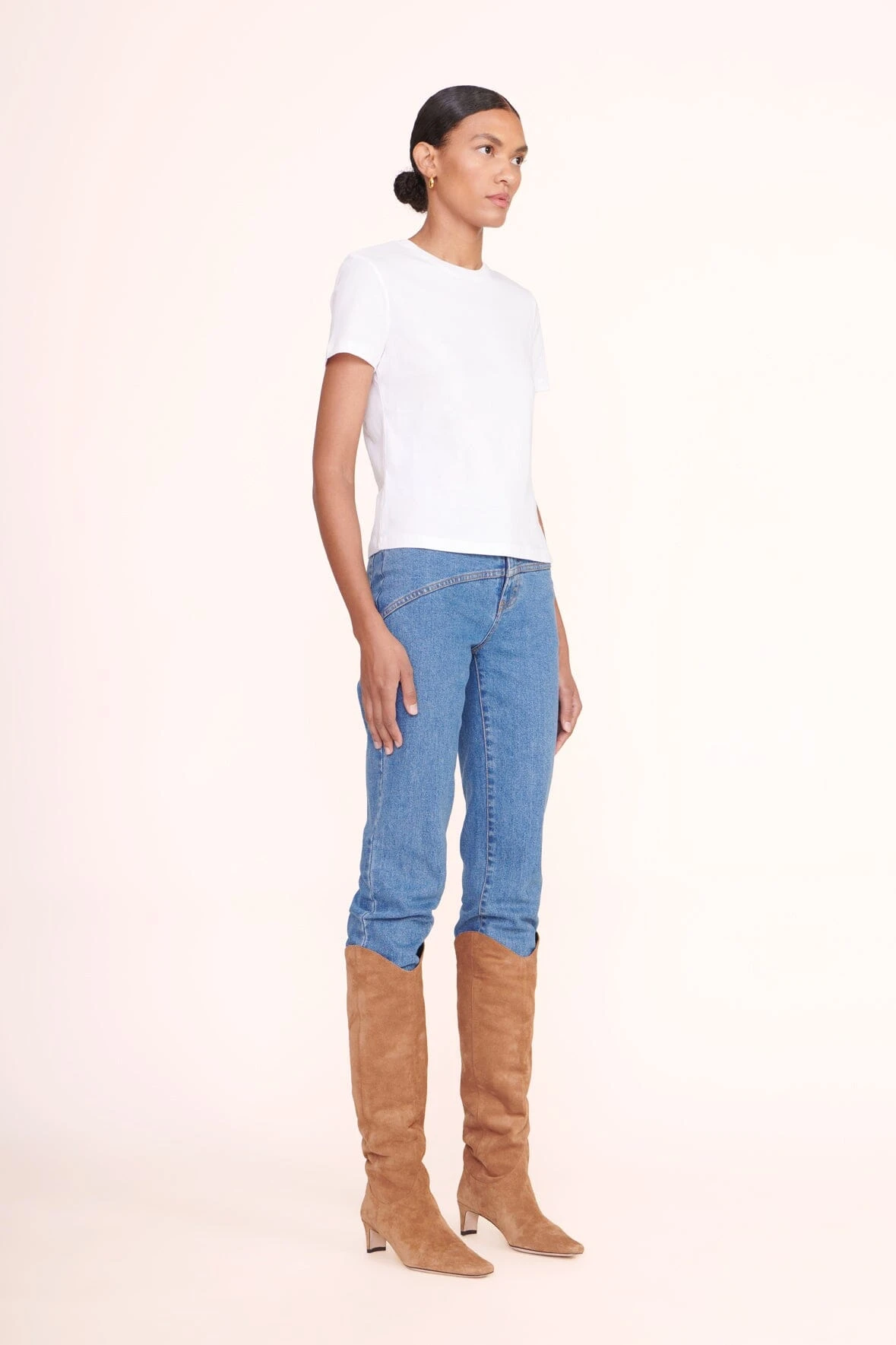 A basic cotton tee with a fitted silhouette. A great layering piece, this tee can be worn with any of our denim for a casual look.