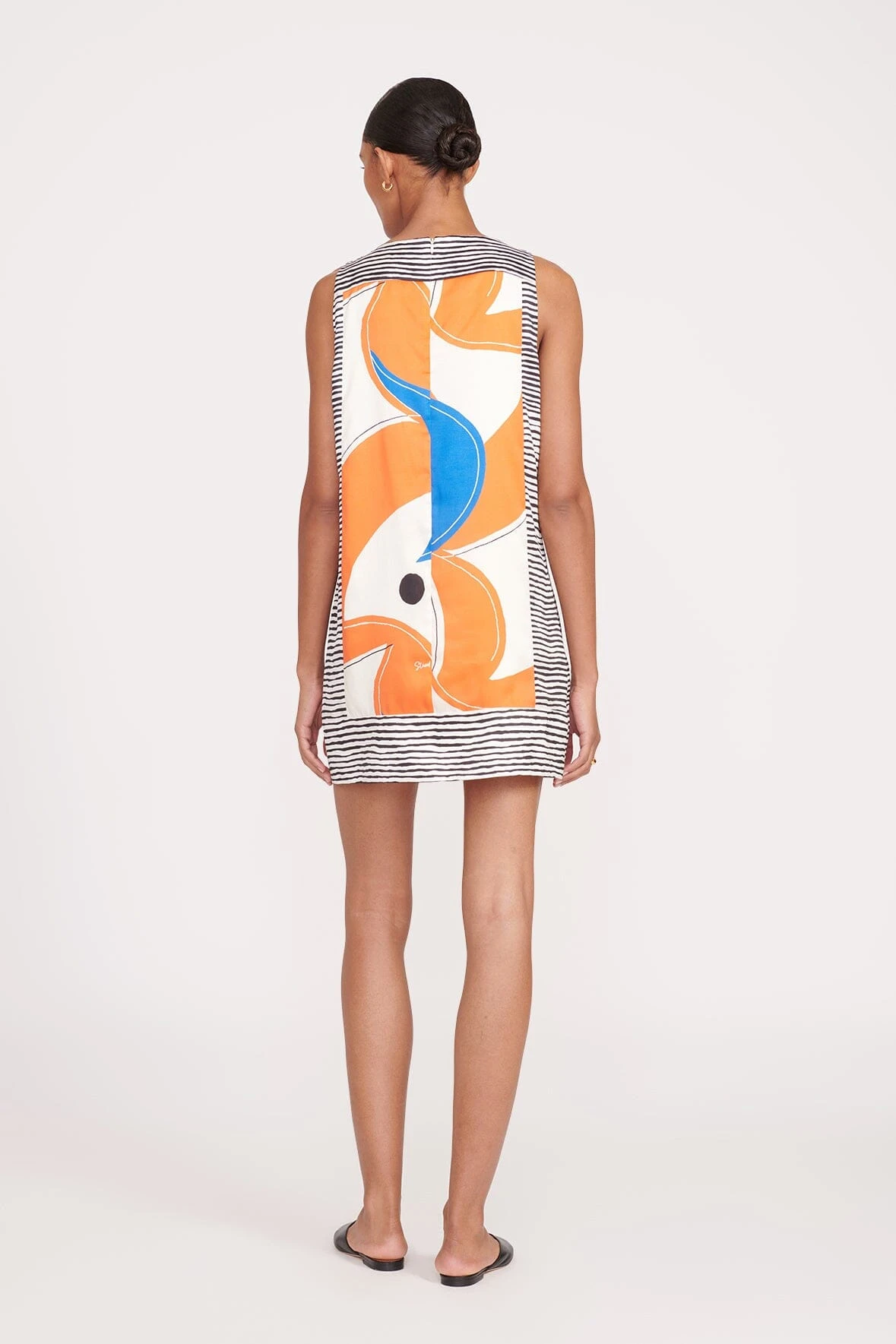Mini shift dress in a scarf-inspired abstract print. The Hepburn offers an easy straight fit and can be worn with our matching silk scarf.
