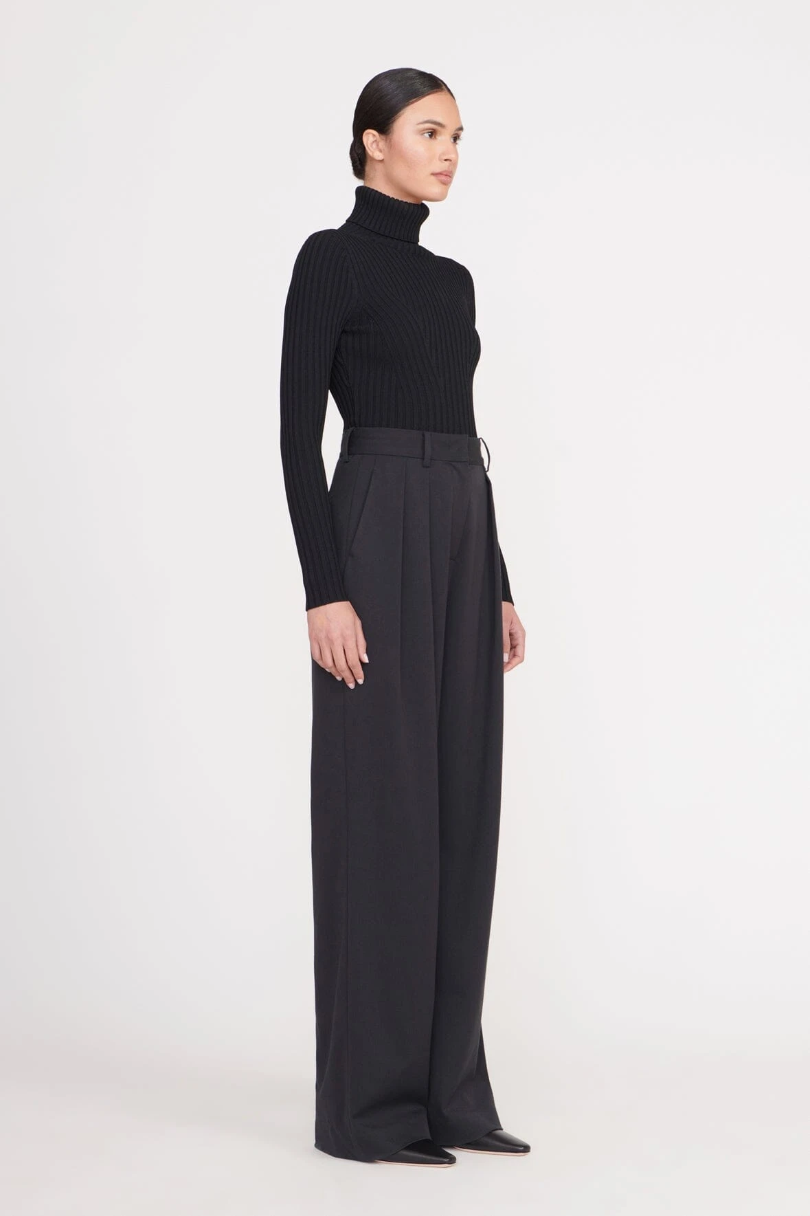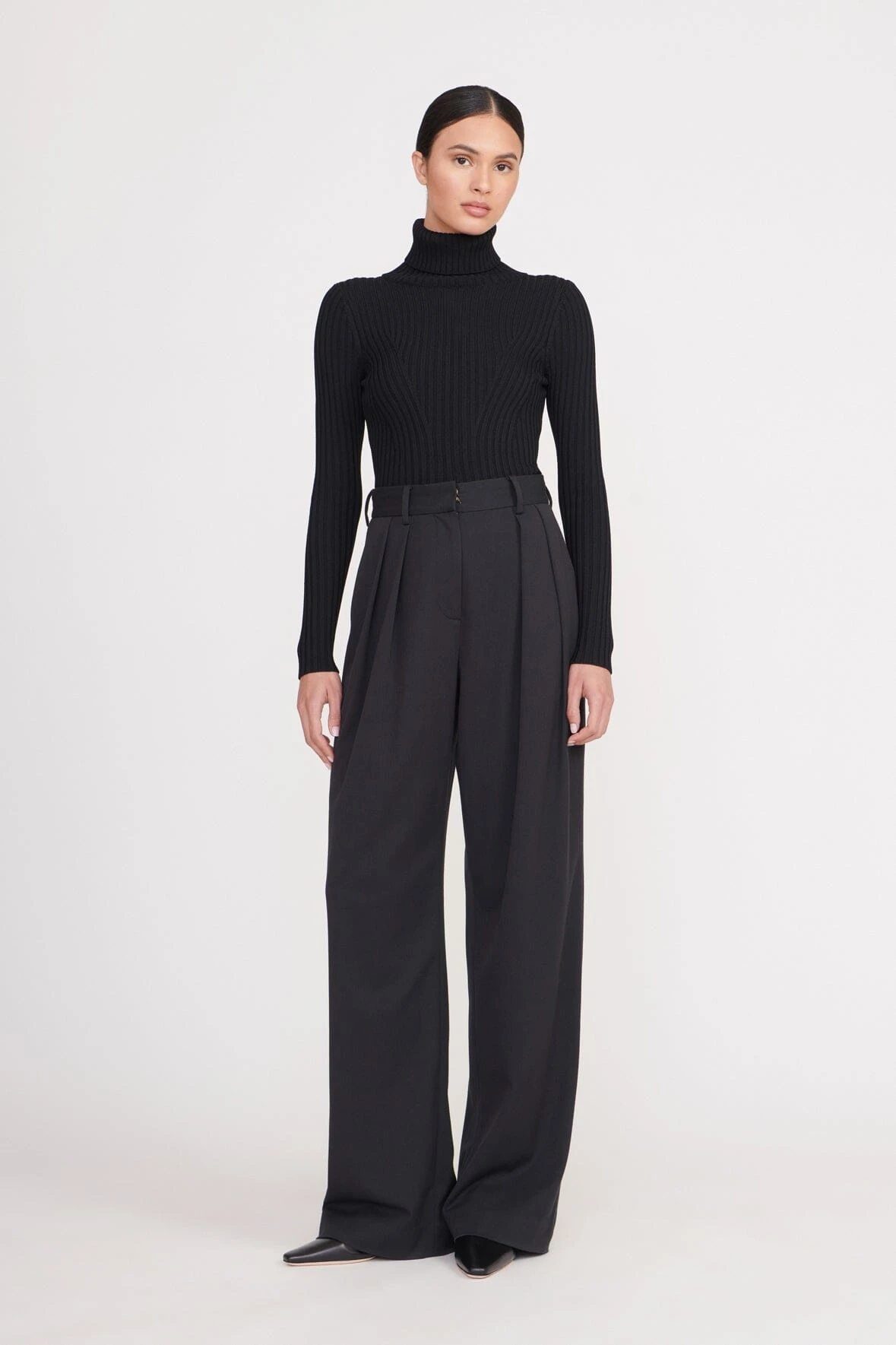 A fitted, long sleeve turtleneck, the Jace Top offers an essential layering piece for any seasonal transition. This style is made out of a rib knit fabric with fully fashioned directional pattern.Â