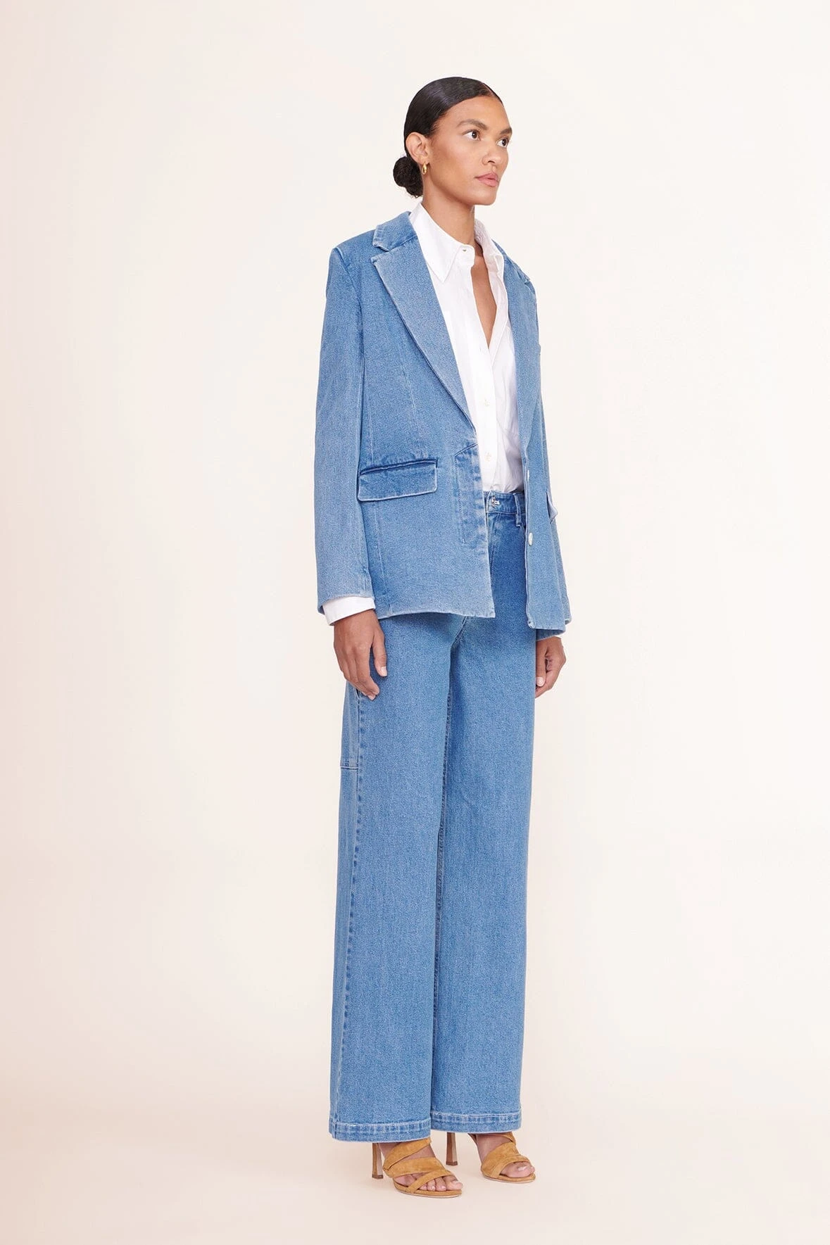 New for the season, the Maxwell Blazer is a structured denim blazer two front hip pockets and a two-button closure. This style features an interior lining and pocket at the left chest.