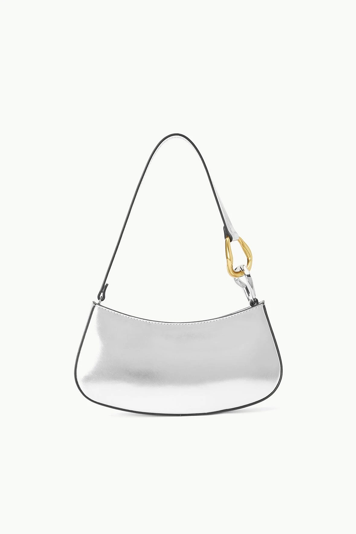 The classic mini shoulder bag in a mirrored chrome update for Fall. The Ollie Bag features a hardware design on the strap and zipper closure.