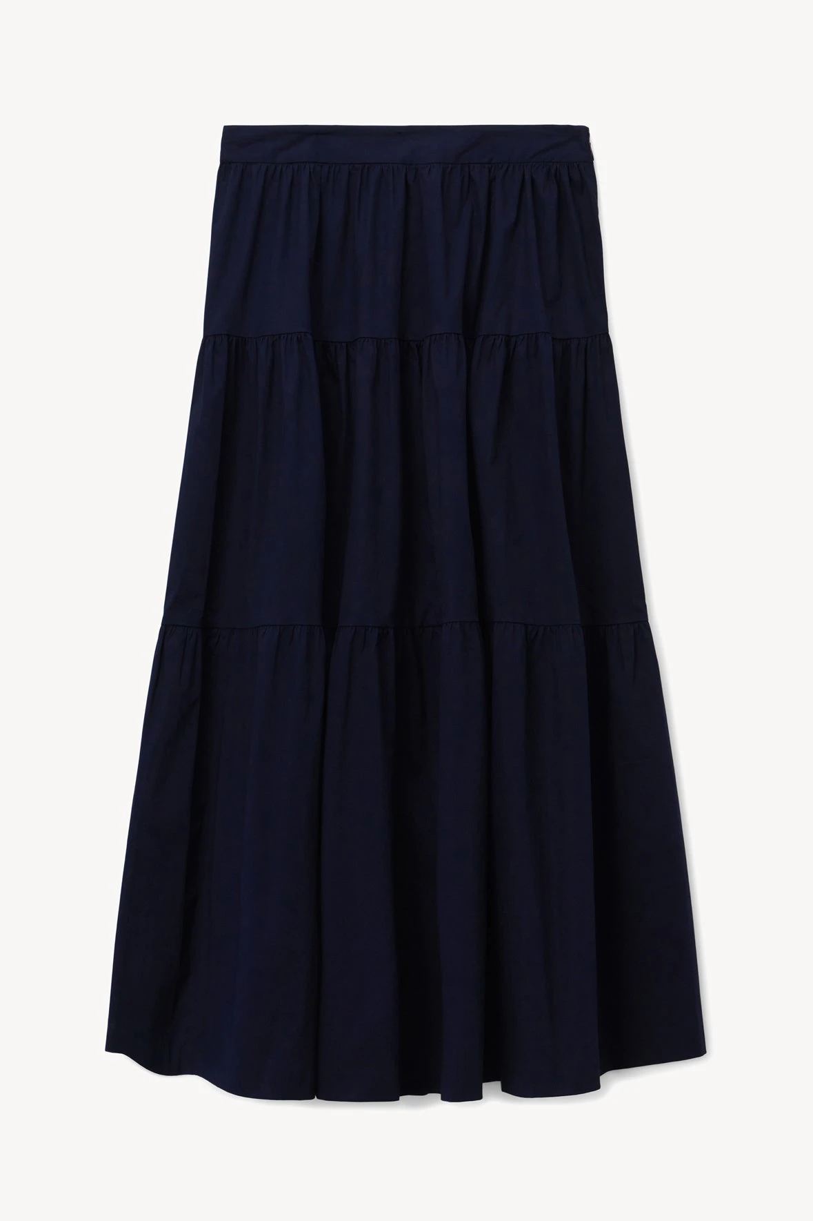 The Sea Skirt is a tiered ankle-length cotton poplin skirt and features a side zipper. This skirt is a closet staple that can be worn year-round.