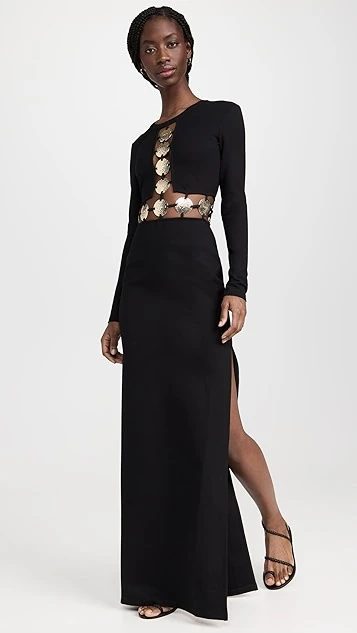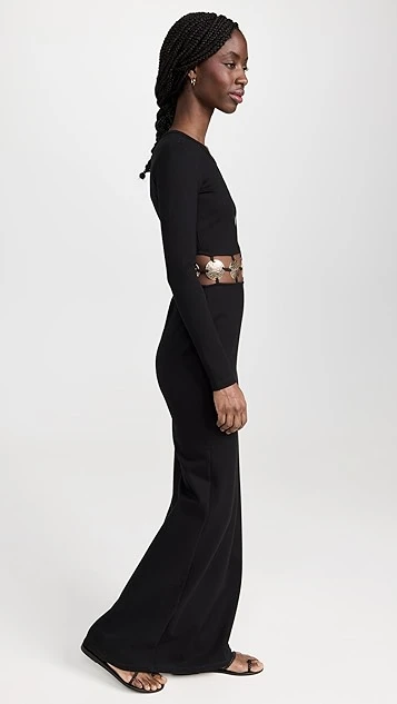 - Jewel neckline and long sleeves