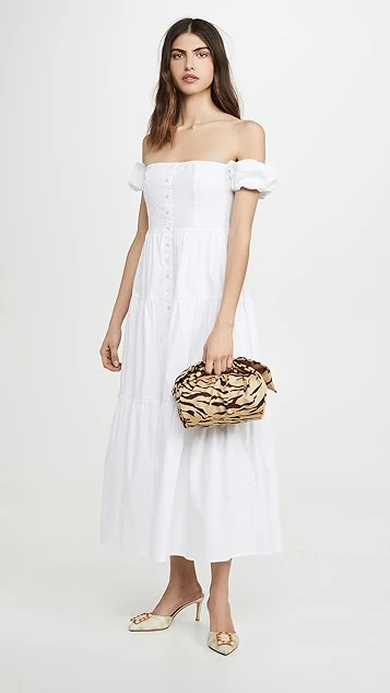 Crafted in crisp cotton and featuring a shoulder-baring silhouette, this swingy STAUD dress is a summer-friendly style that’s ready to soak in some serious sun. Play around with this versatile piece by pairing it with anything from simple slides to pretty pumps.