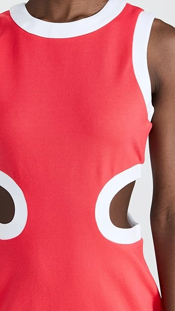 A slim-fitting STAUD mini dress with a charming throwback feel, which comes courtesy of saturated color and side cutouts that are emphasized by eye-catching contrast trim.