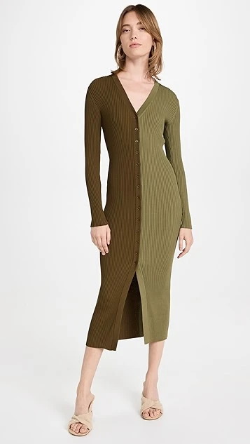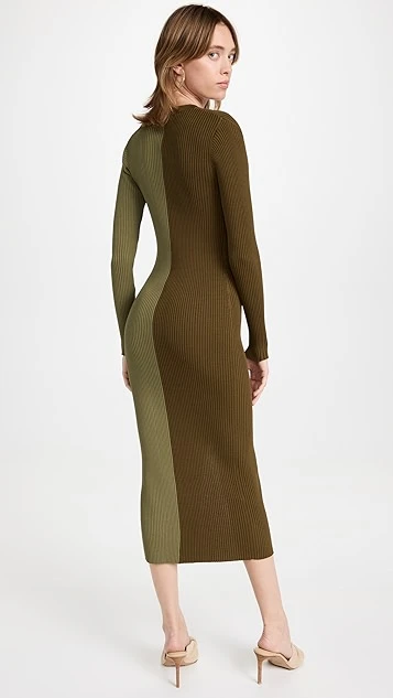 Contrasting colors add a bold look to this STAUD dress, which is crafted in a slim-fitting ribbed knit. Layer over a white tank and jeans or wear it on its own with slim booties and polished jewelry.