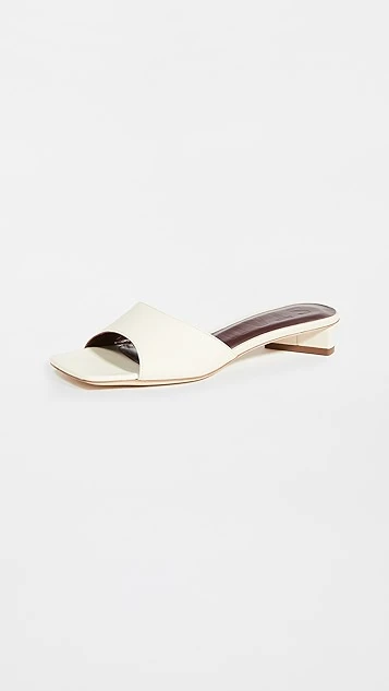 These simple yet creative STAUD mules are outfitted with an asymmetrical block heel. Slip them on with a voluminous tent dress and a micro bag for a sunny day about town.