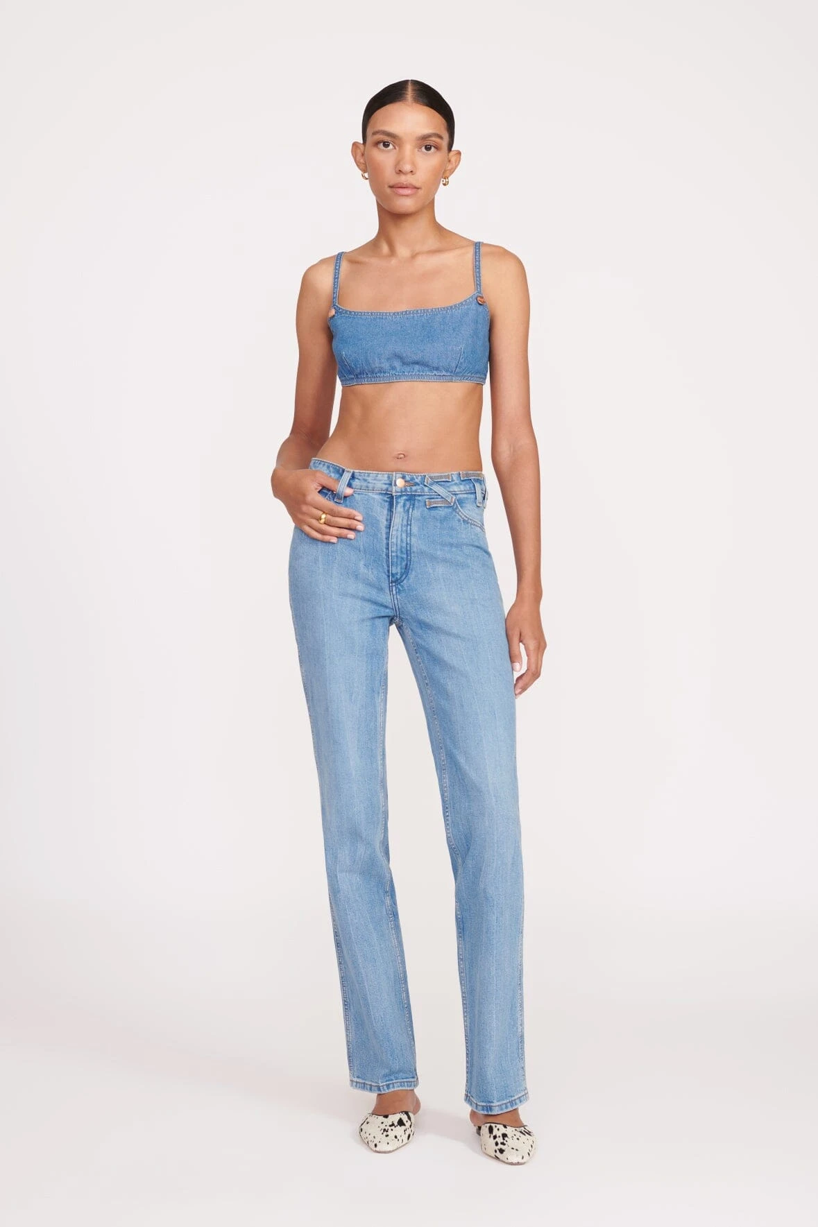 Be the first to review “STAUD + WRANGLER THE JEAN BIKINI TOP | MID BLUE” Cancel reply