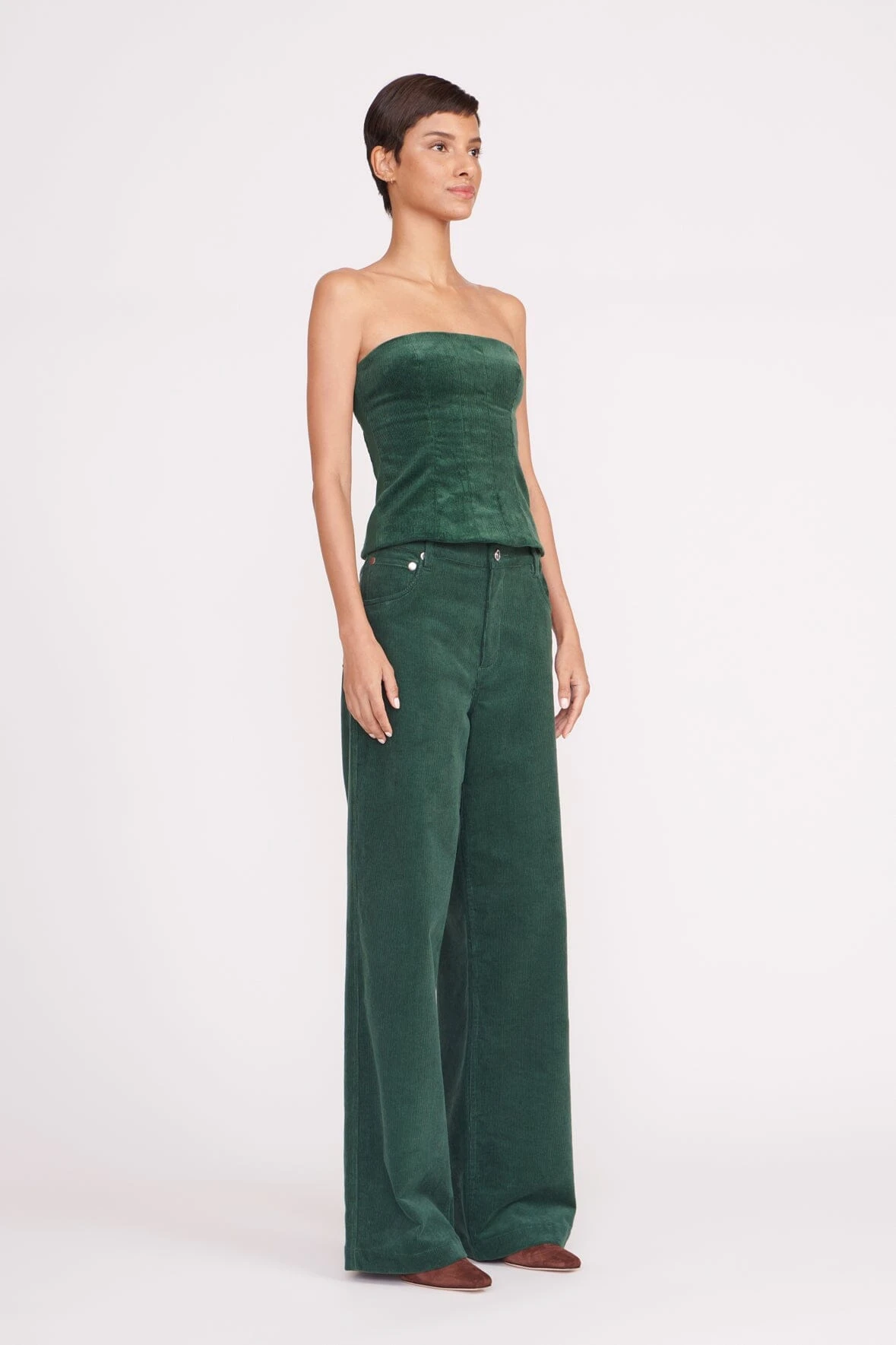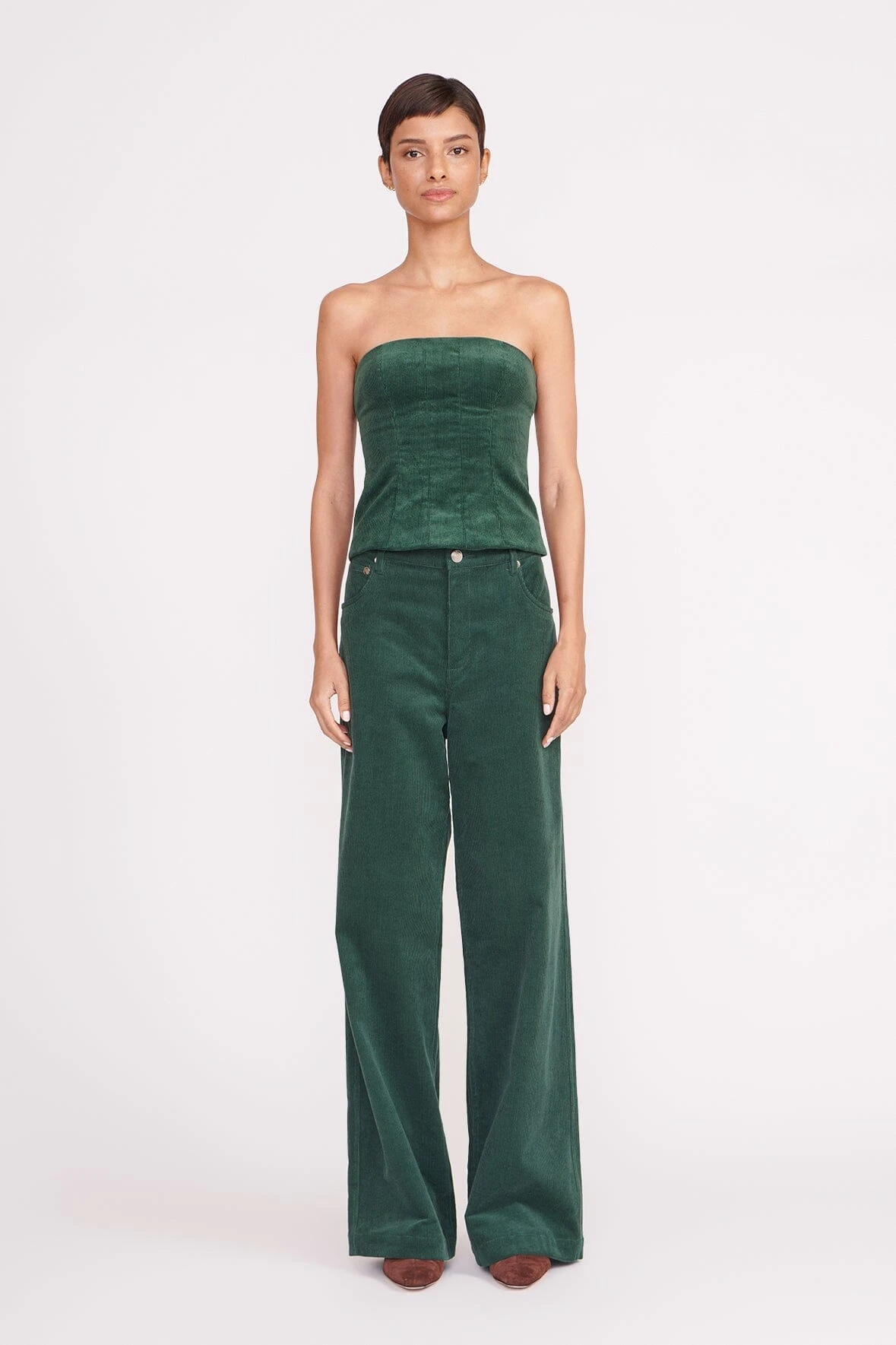 A fitted, strapless tube top with exposed back zipper. Updated in Corduroy, the Woodgrain Top the perfect Fall layering piece. Complete a coordinating set with the Grayson Pant.Â